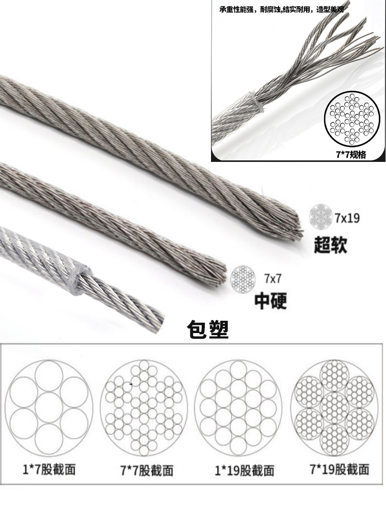 Stainless steel wire rope manufacturers, plastic clothesline, power cable, ship lifting stainless steel wire rope